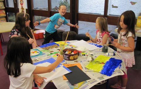 Newmarket-on-Fergus Public Library held an Arts and Crafts session for children on Friday 24th August 2012. The theme of the session was "What I did on my summer holidays". The children used paint, glitter, pipe cleaners and other materials to create their pictures.
